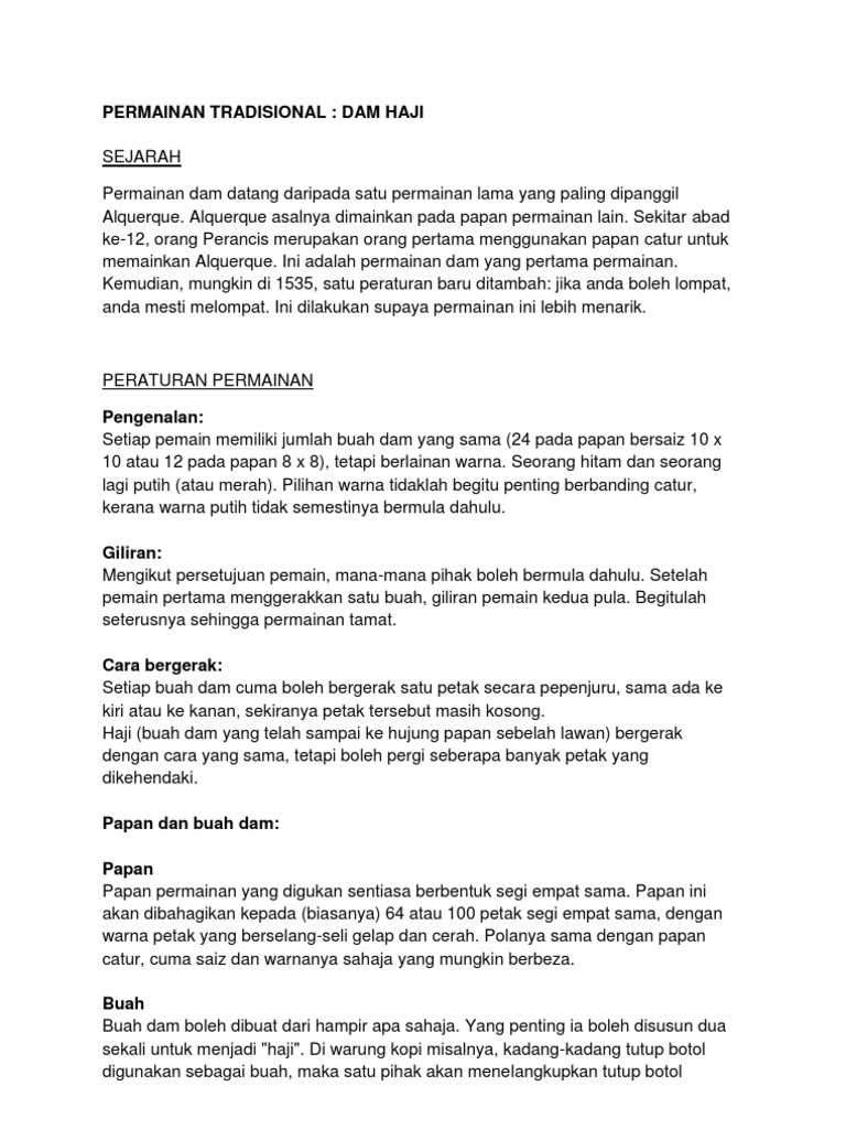Cara Bermain Dam Haji - Dalam permainan sepak raga, beberapa pemain berdiri dan membentuk satu bulatan.. Dam adalah permainan yang sangat tua, karena jejak cara bermain dam ditemukan di mesopotamia atau negara irak pada 3000 sm atau sudah ada lebih dari 5000 tahun yang lalu. Jgn lupe yemalam ambang merdeka ni boring x tahu nak buat ape? Haji buah dam yang telah sampai ke hujung papan sebelah lawan bergerak dengan cara yang sama tetapi boleh pergi seberapa banyak petak yang dikehendaki. Hago selalu berinovasi dengan berbagai genre game yang keren keren semuanya. Penerangan permainan dam haji, peraturan by amirahaifan92 in dam haji.