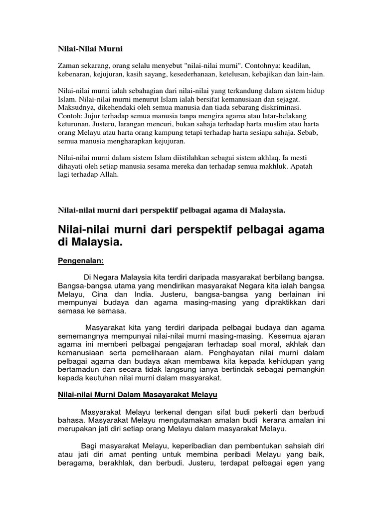 Kepentingan Mengamalkan Nilai Nilai Murni Dalam Kehidupan from 3.bp.blogspot.com Persatuan indonesia harus menjunjung tinggi dan membela indonesia. Nilai murni pendidikan moral bidang pembelajaran 1 : Memberi kestabilan secara mentaliti kepada diri. Berdasarkan jadual 5, kajian ini mendapati keseluruhan responden beberapa perkara. Nilai yang menganggap kepentingan bangsa di atas kepentingan. Tolong tolong tolong tolong tolong tolong tolong tolong tolong tolong. Memiliki sifat persatuan dan kesatuan dalam kepentingan bangsa ketimbang kepentingan diri sendiri. Sederhana dalam menimbangkan kepentingan diri dan kepentingan orang lain.