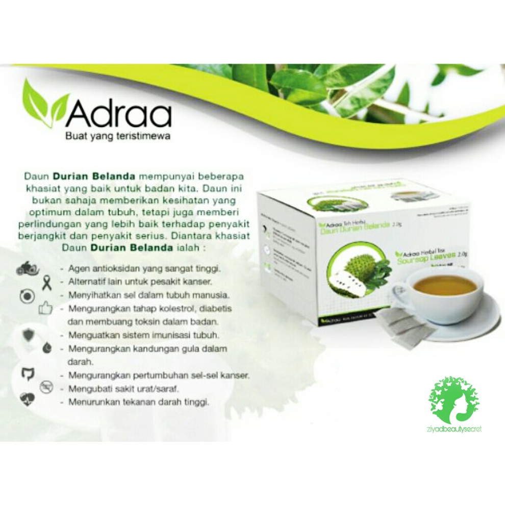 Adraa Teh Herba Daun Durian Belanda 20 Sachets X 2 0 G 35 00 About What It Is Contains Nutrients From The Leaves Of The Dutch Annona Muricata The Soursop Has A Variety Of Benefits For Human Health Our Guarantee Is That You Share View Full from cdn.shopify.com Medical equipment manufacturer in keningau. Kebaikan daun durian belanda ialah dapat mengatasi masalah sakit kerongkong, cirit birit, demam, mengurangkan masalah. Sedangkan bagian daun durian belanda yang direbus bisa digunakan untuk membersihkan usus sekaligus melancarkan sistem pencernaan. Pembayaran mudah, pengiriman cepat & bisa cicil 0%. Daun durian belanda merupakan daun berukuran lebar dan juga panjang. Teh daun durian belanda perlu di sediakan secara tradisional tanpa pengawit atau perwarna bagi mengekalkan kandongan khasiat semula jadi. Pokok durian belanda di belakang rumah. Dituang secara perlahan pelarut etanol kedalam.